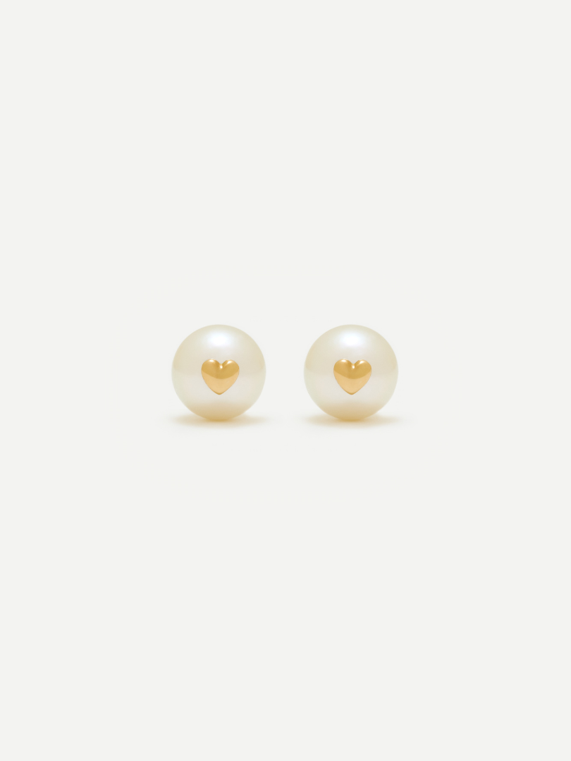 設計師以俐落的 18K 金屬線條,勾勒出上方細緻的愛心輪廓,下方則輕輕承托著一顆精挑細選、溫潤如玉的高光澤珍珠。